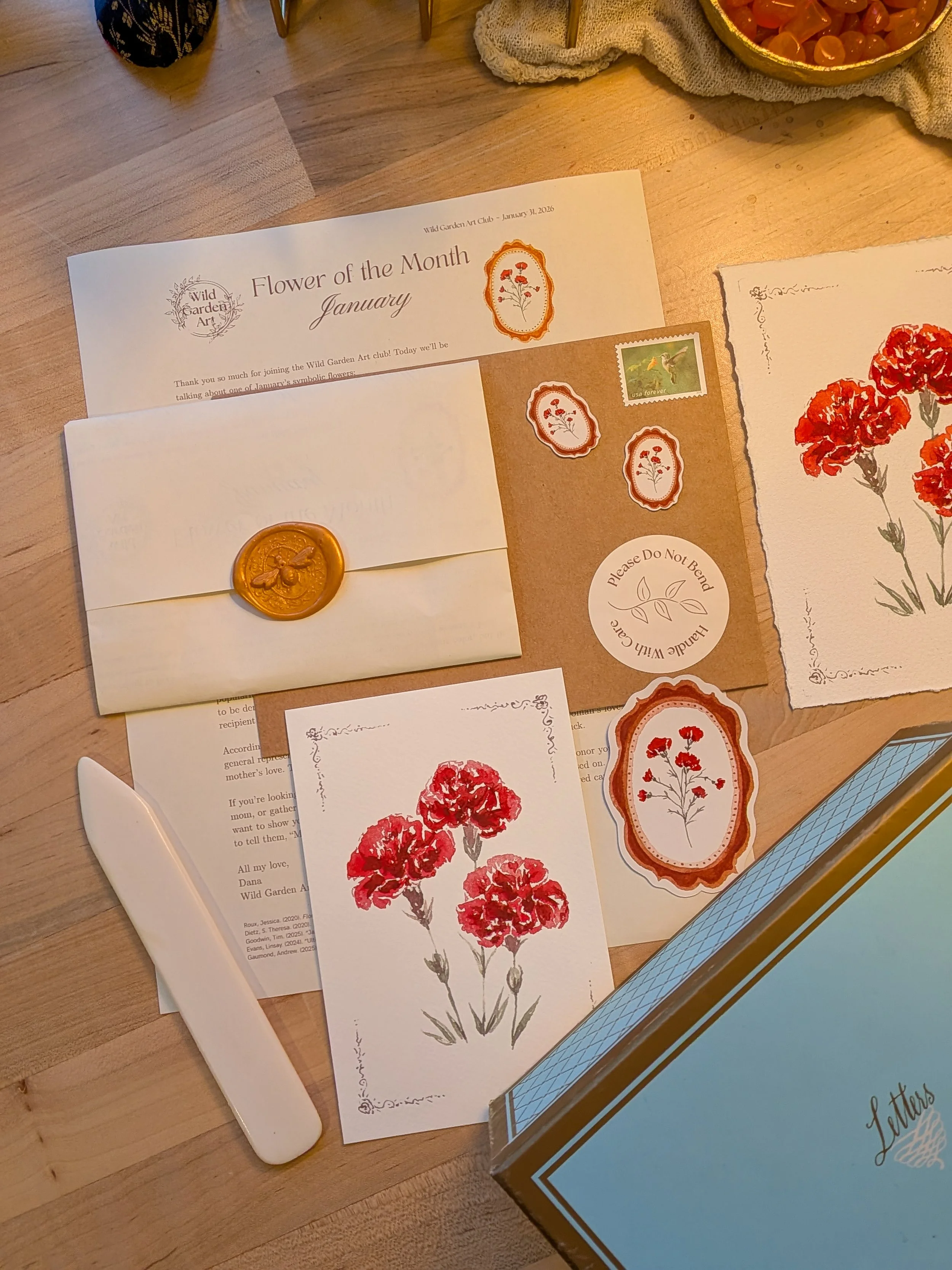 Join The Wild Garden Art Club to receive a special letter each month with a postcard and special art gifts based on my watercolor art! Bring back the magic of snail mail and brighten your month with a special present.